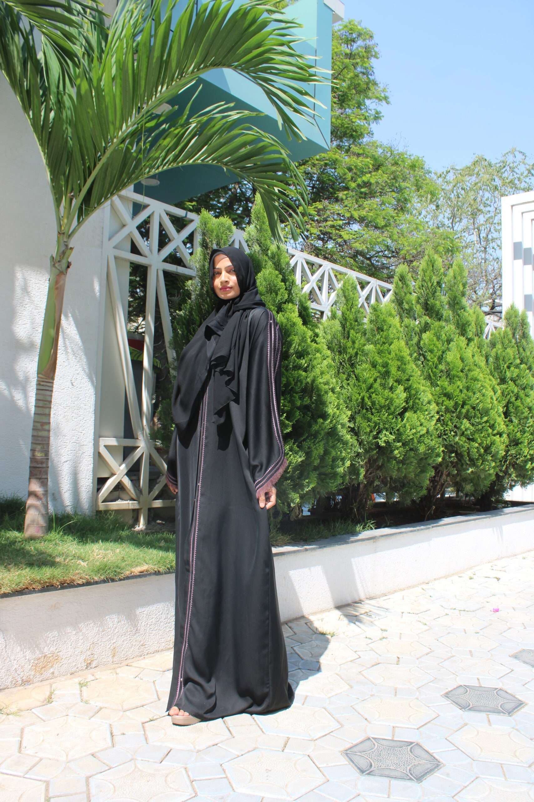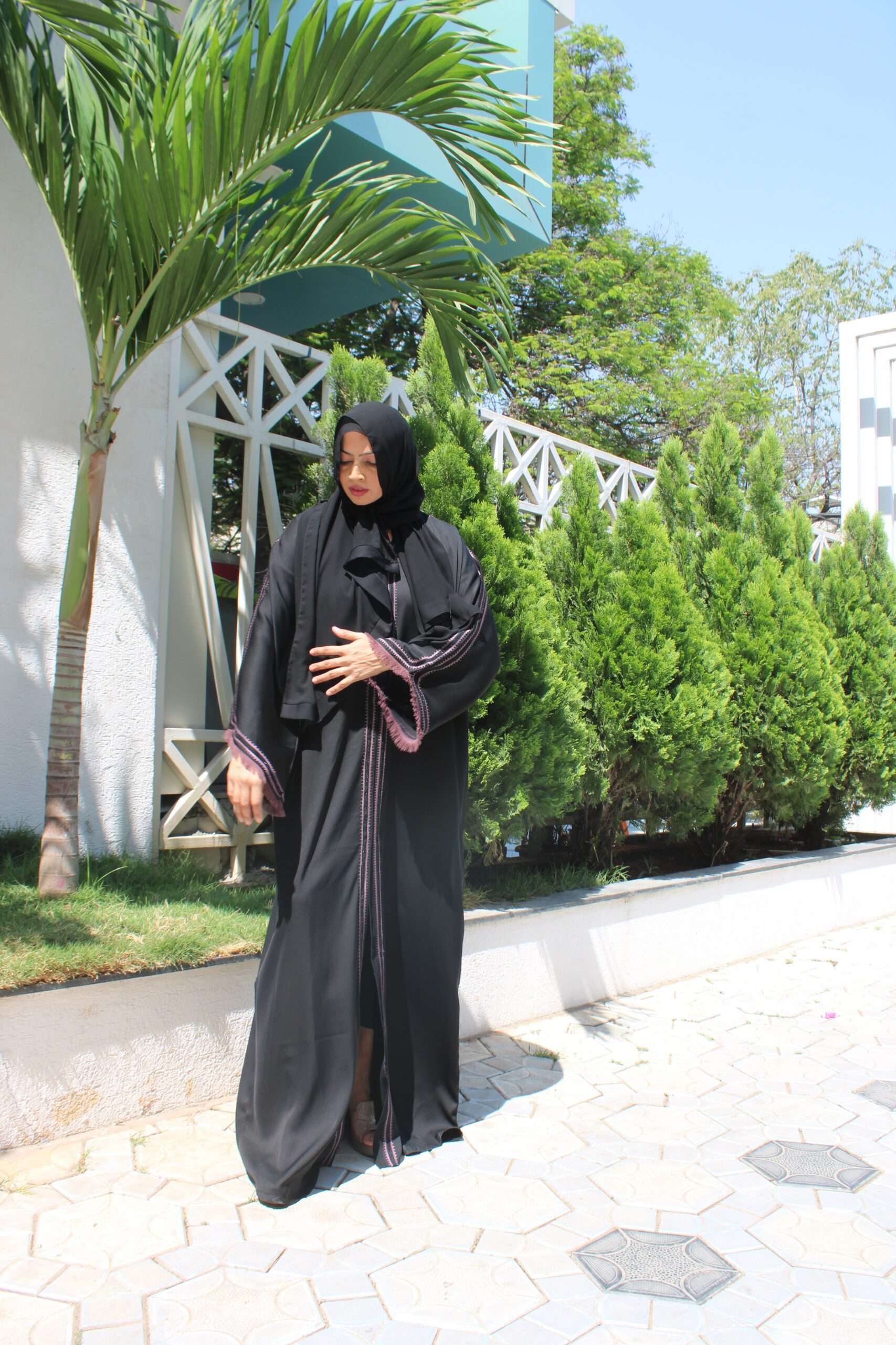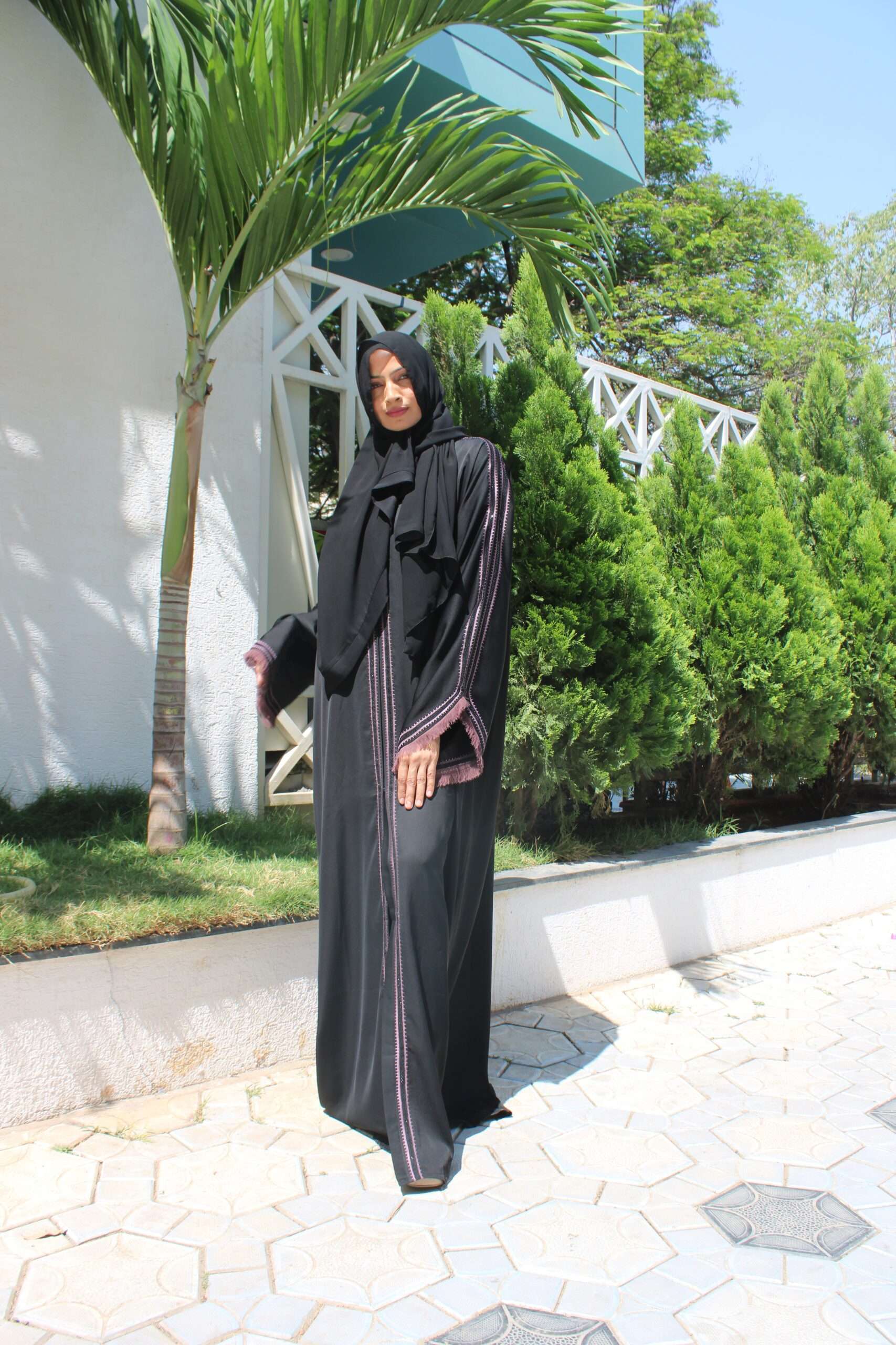 Black Abaya with Stone Work