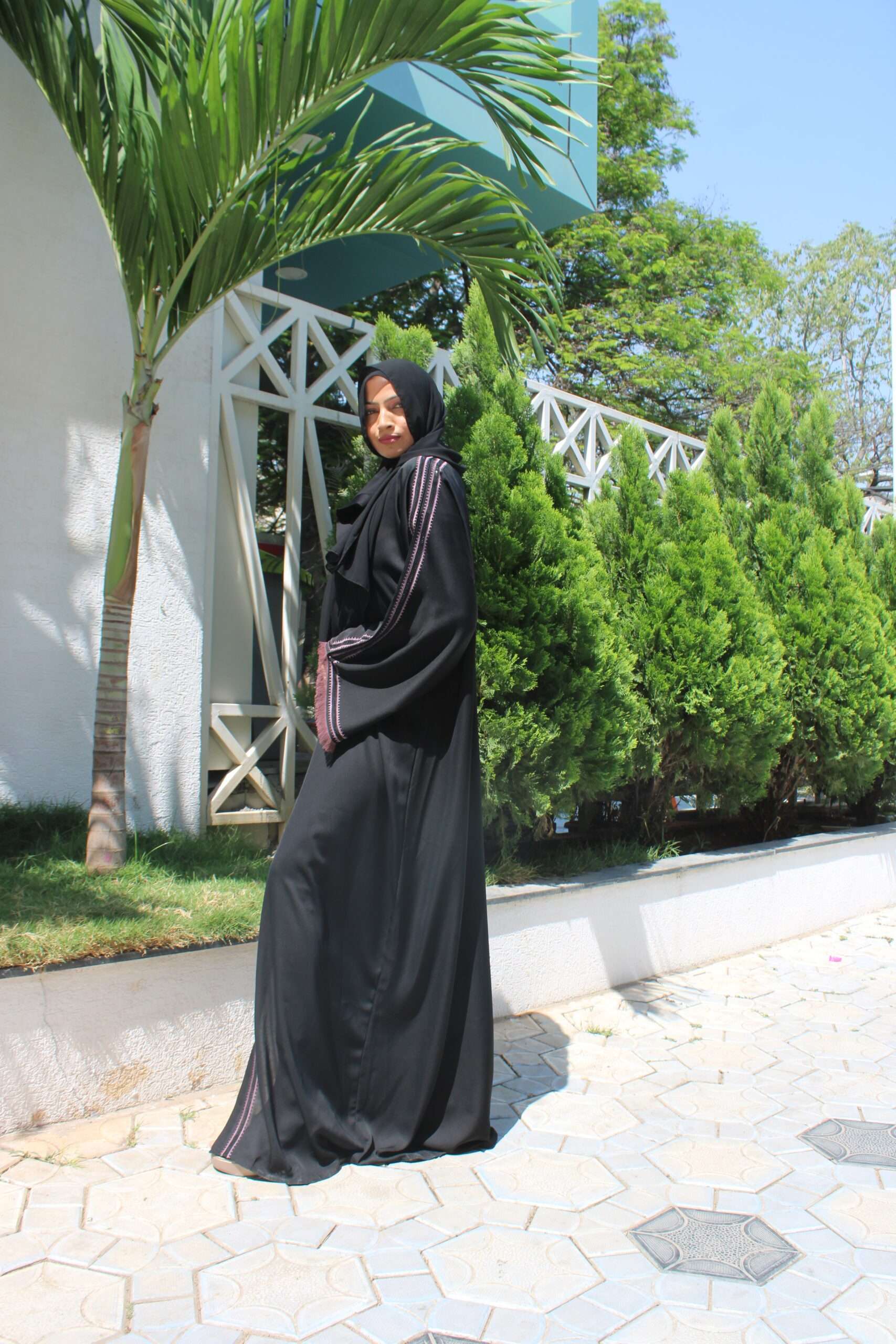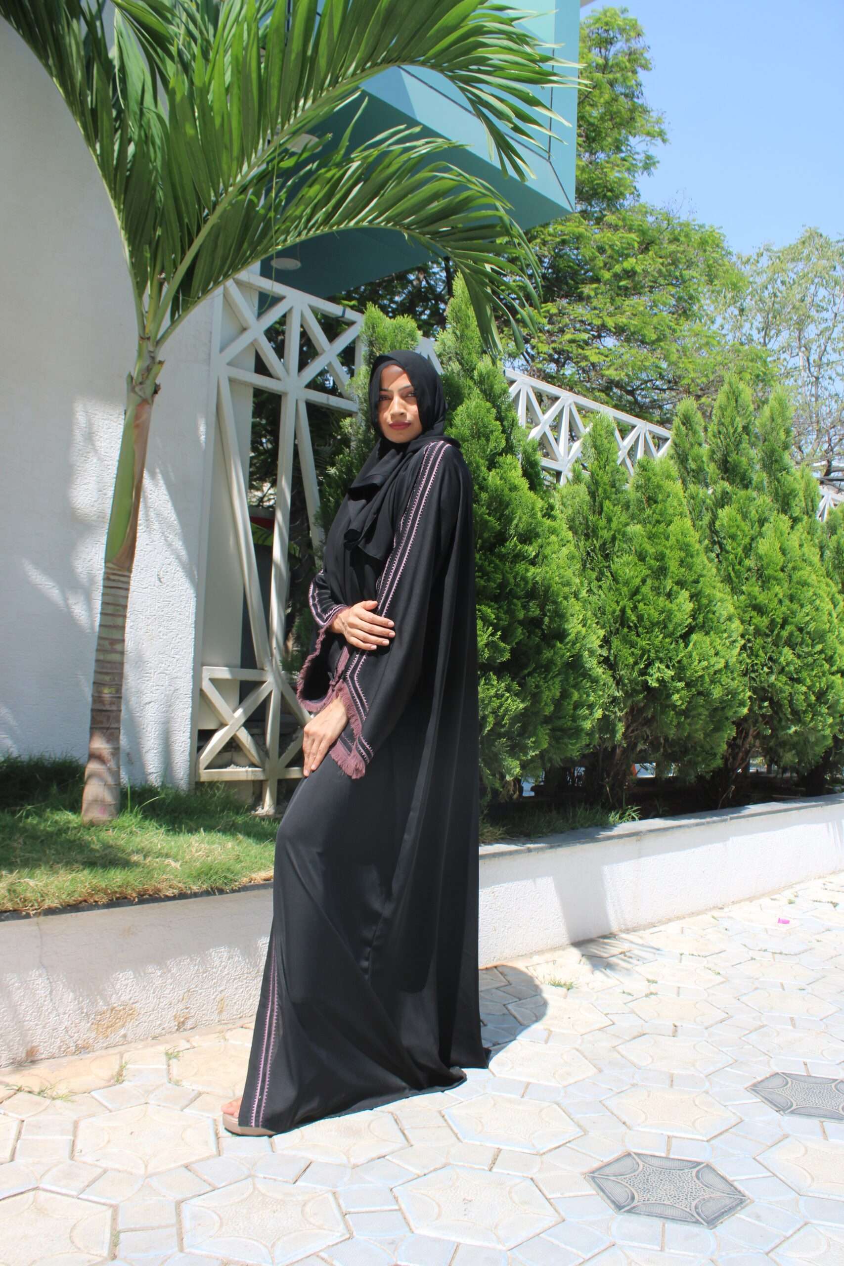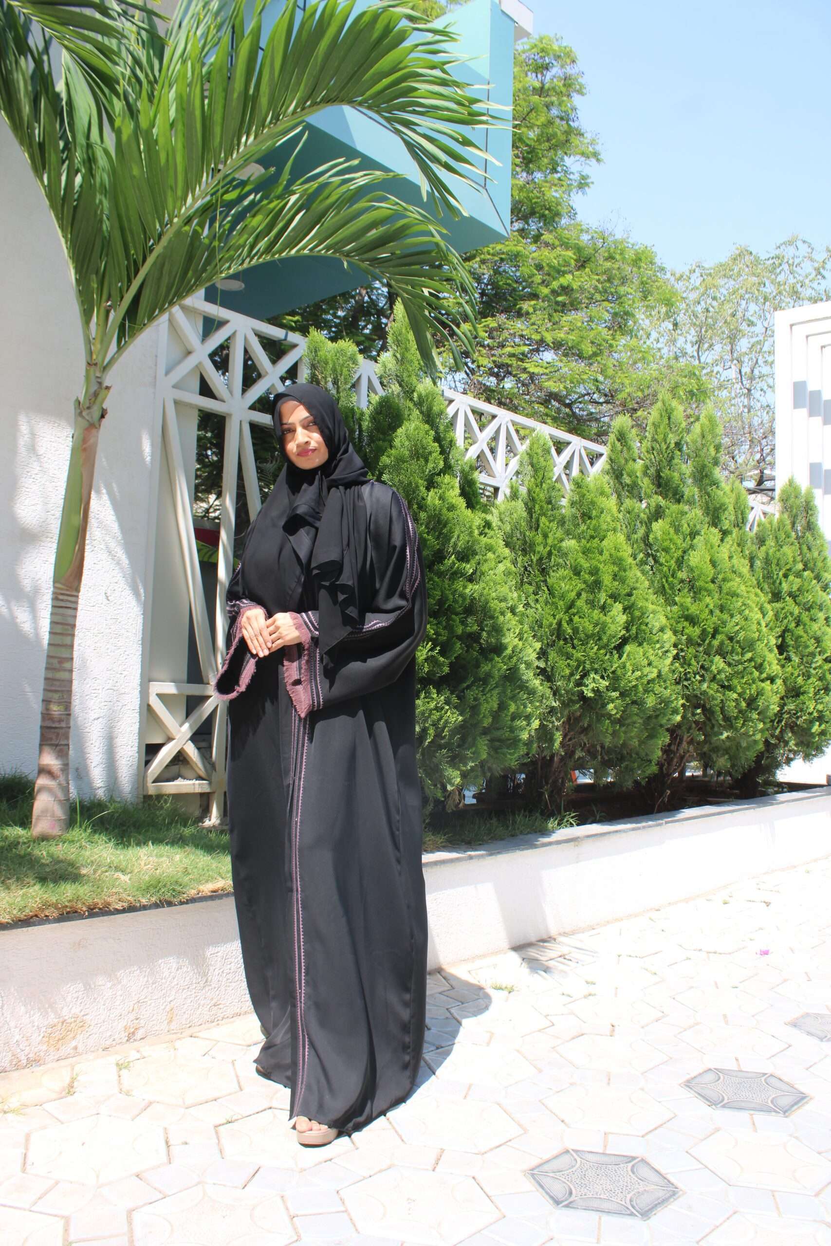 Black Abaya with Stone Work