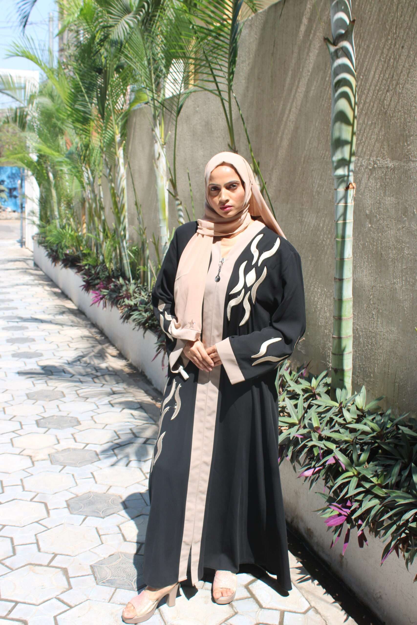 Exude elegance with this exquisite Black Kardana Abaya, adorned with intricate embroidery and shimmering stone work. The rich black hue enhances the detailed kardana embellishments, creating a sophisticated and timeless look. Fine embroidery along the neckline and sleeves adds a touch of refinement, while sparkling stone accents catch the light beautifully. Crafted from soft, flowing fabric, it ensures comfort and a graceful drape. A matching hijab with coordinating embroidery and kardana work completes the ensemble. Perfect for both formal and festive occasions, this abaya blends tradition with modern charm!