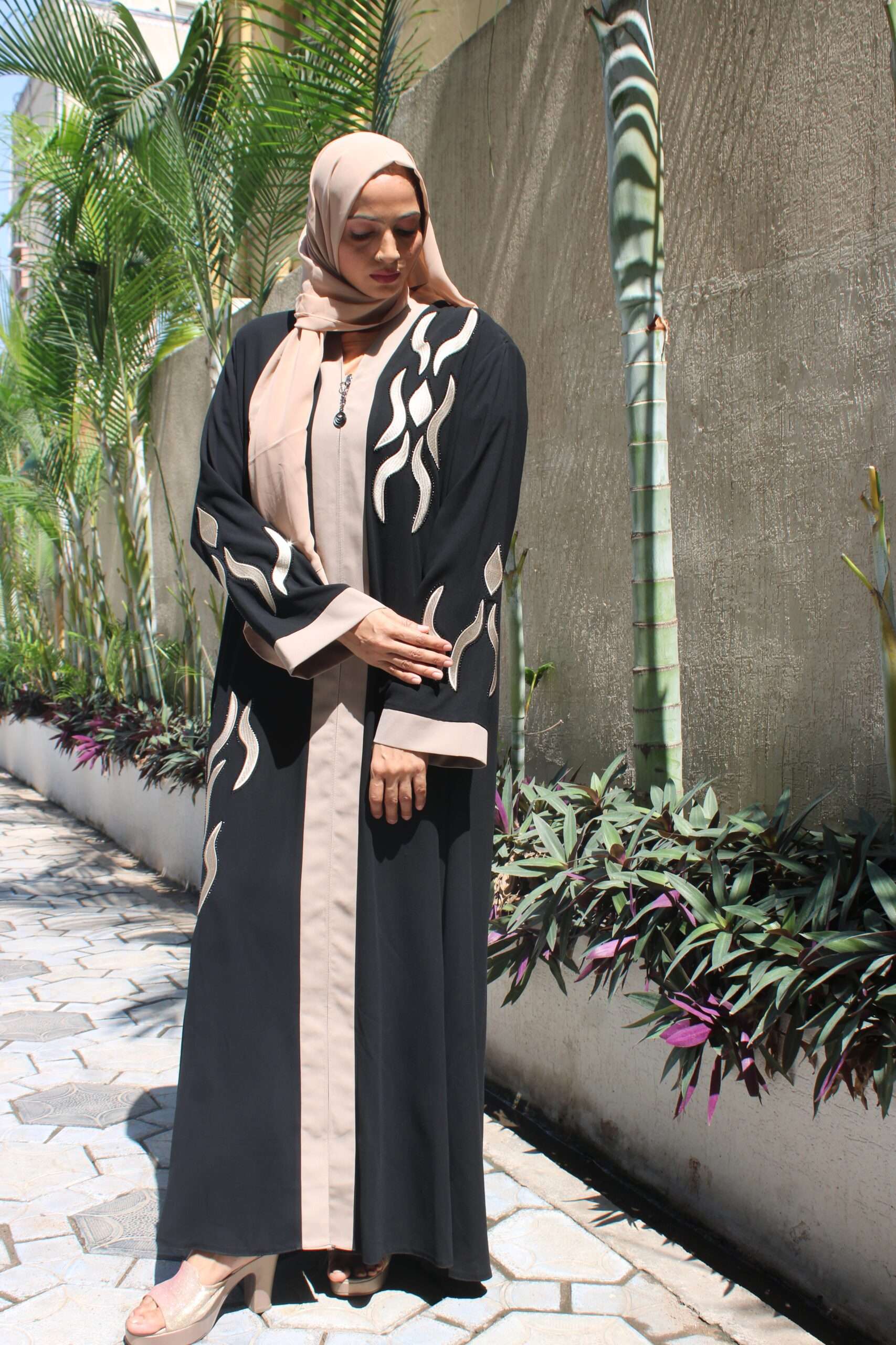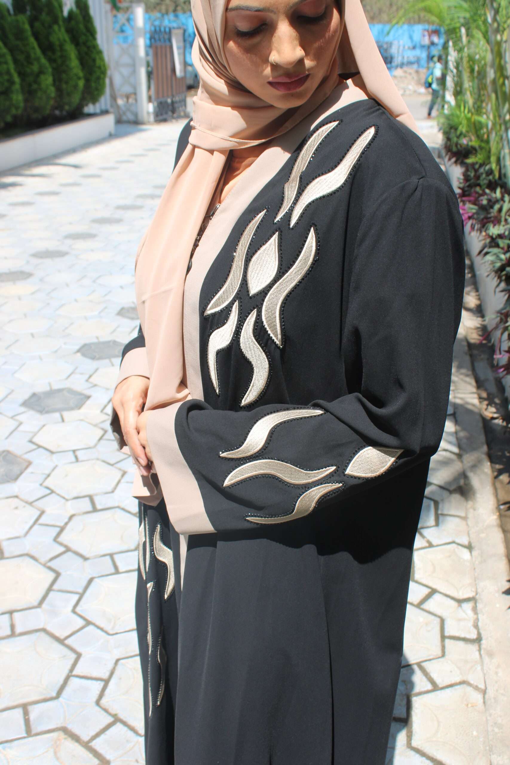 Black Kardana Abaya with Embroidery & Stone WorkBlack Kardana Abaya with Embroidery & Stone Work