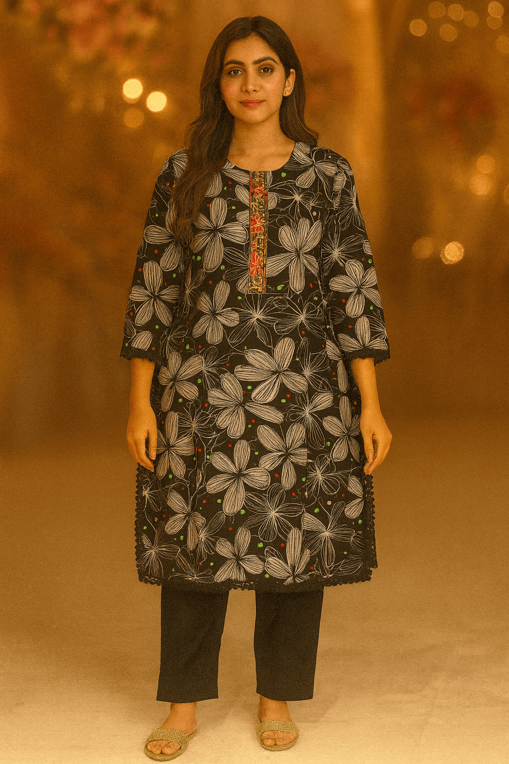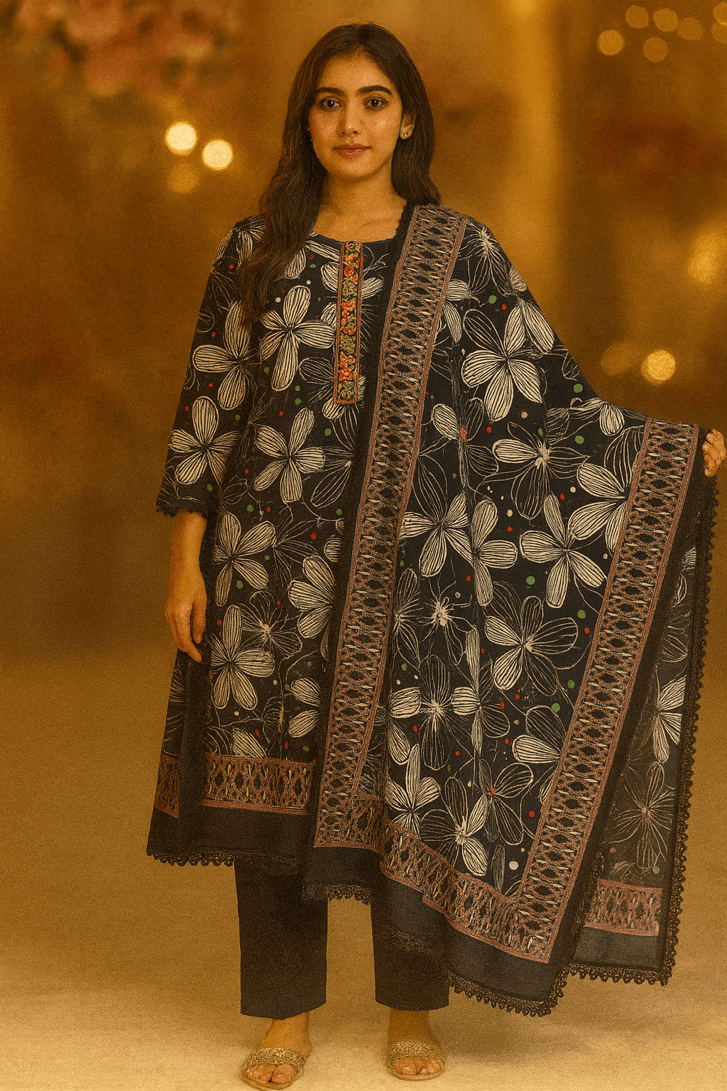 Black Printed Suit with Embroidery