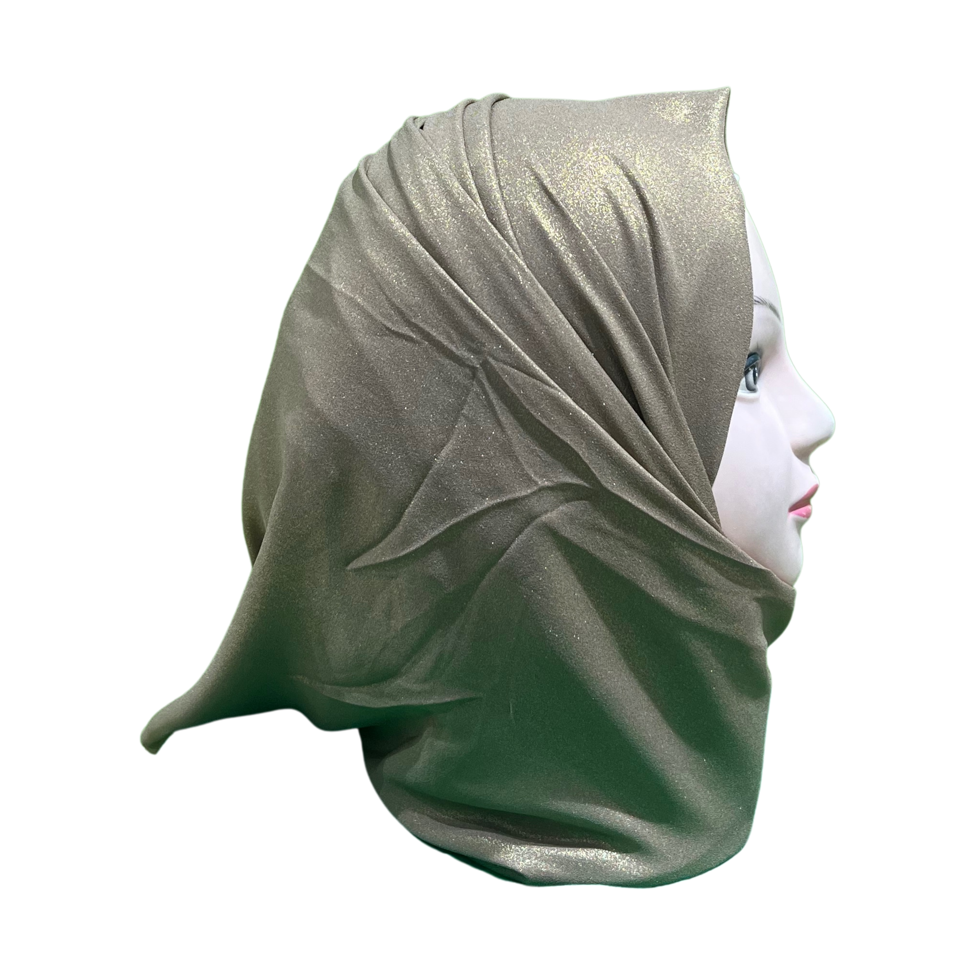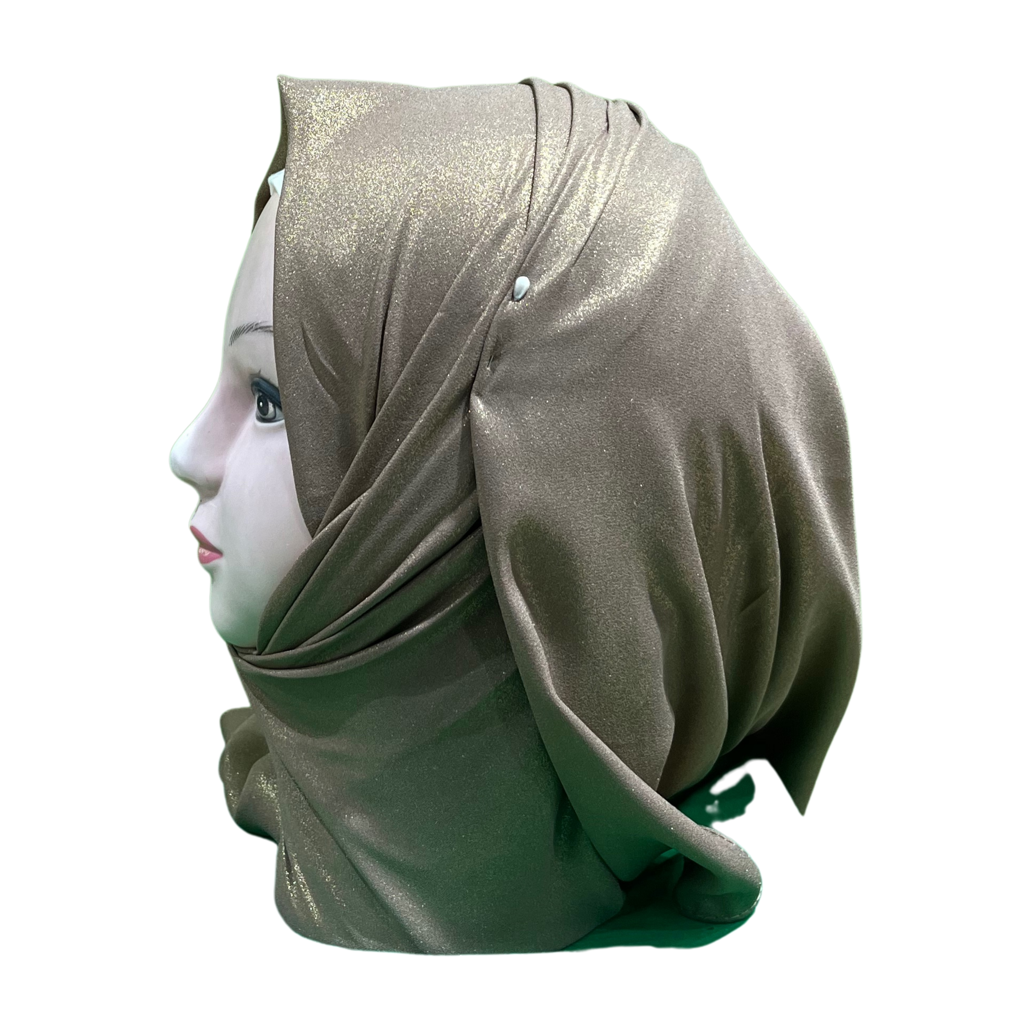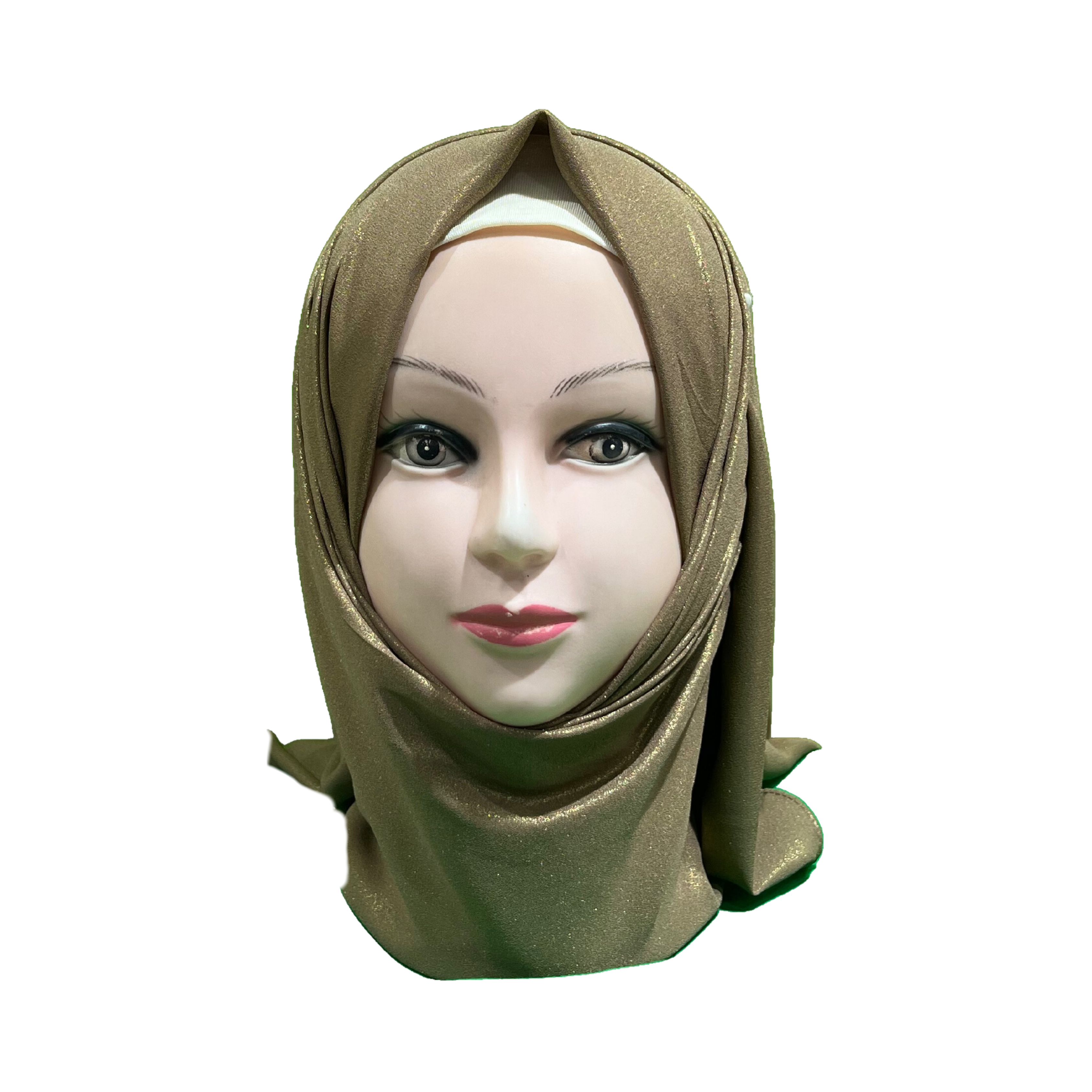 The Shimmer Jorget Scarf?s generous size allows for versatile styling options. Whether draped elegantly over the shoulders, wrapped loosely around the neck, or styled as a chic headscarf, it adds a graceful and stylish touch to any look. The golden brown color complements a wide range of outfits, from casual daywear to formal evening attire.