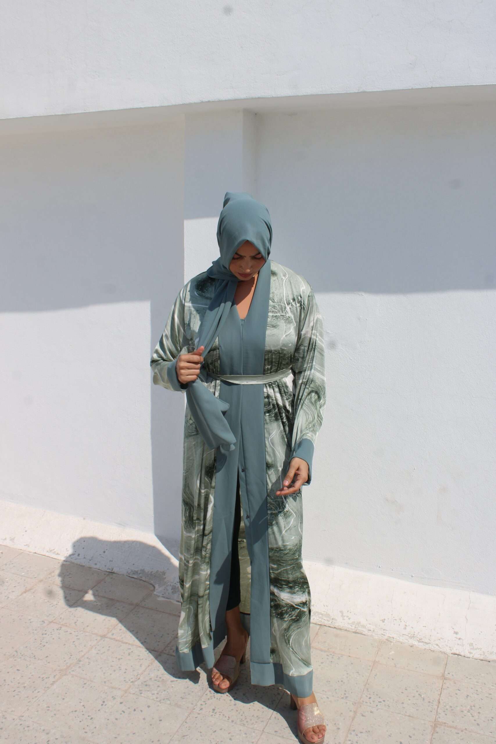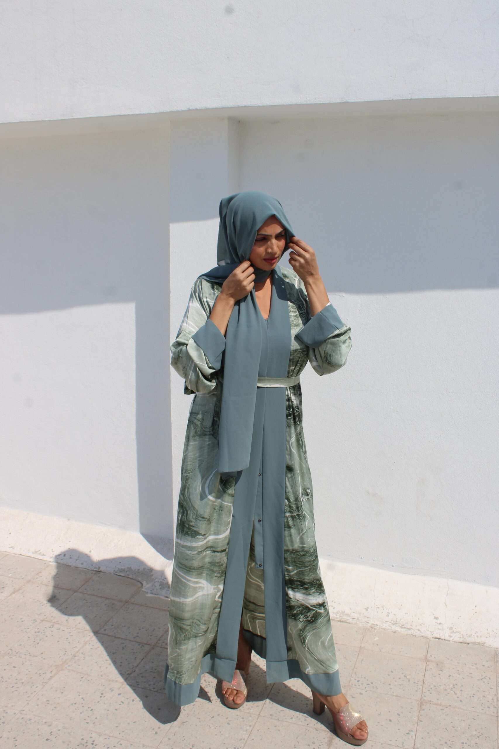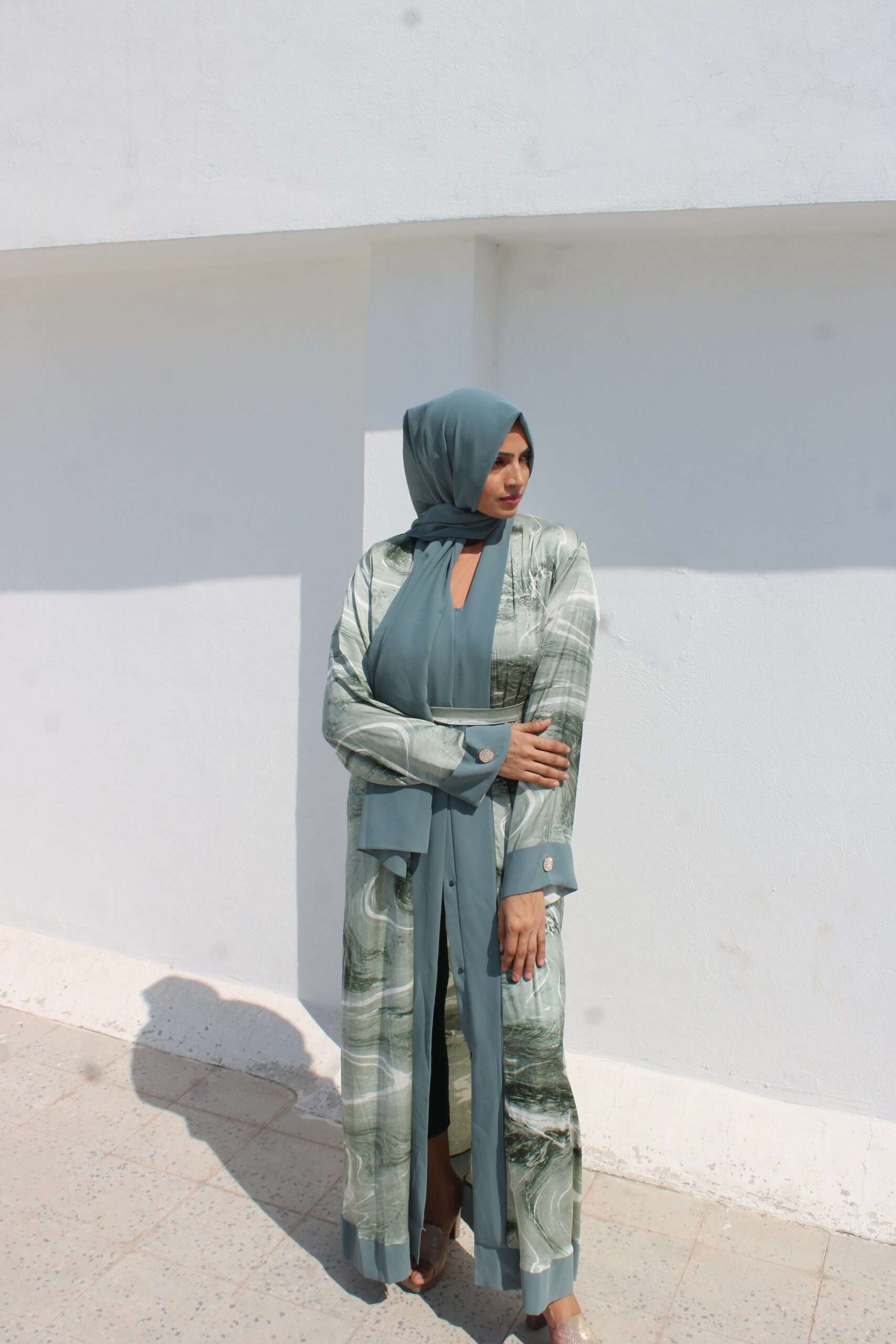 Green Printed Abaya
