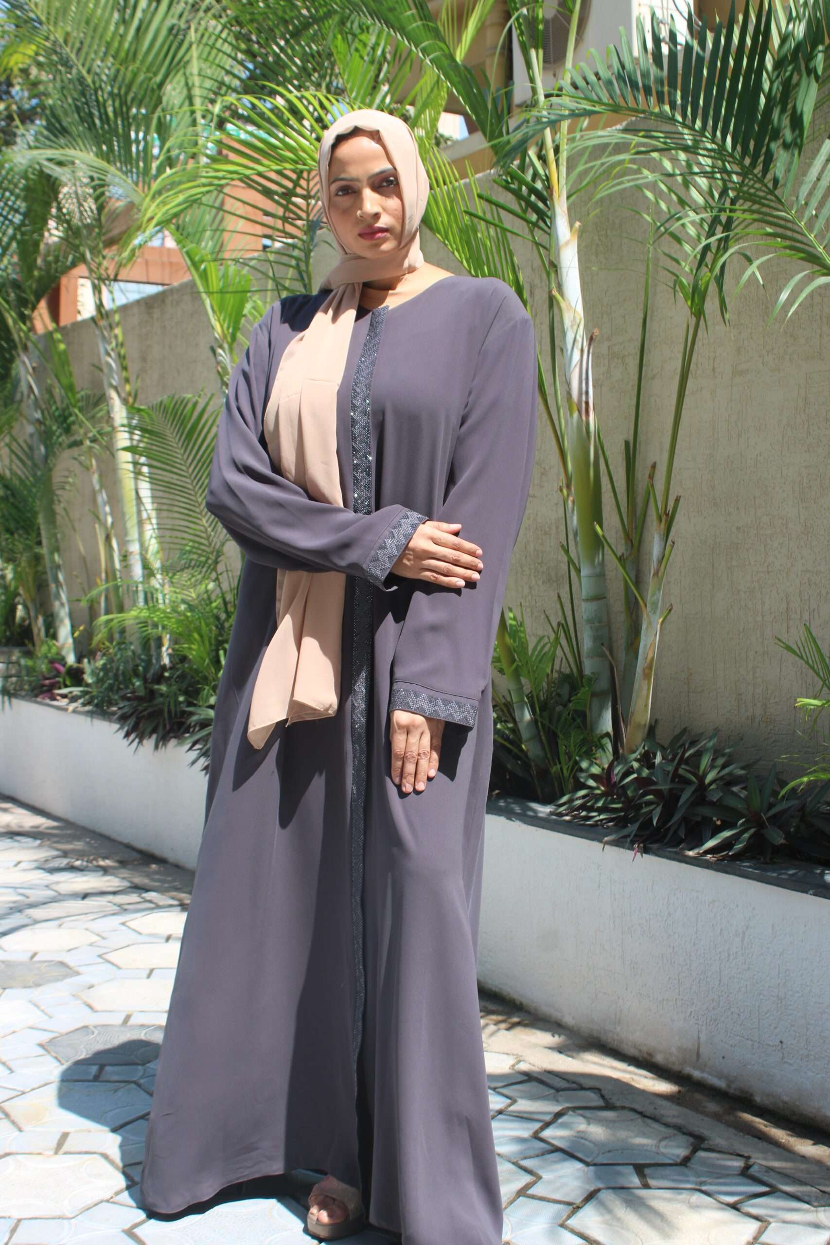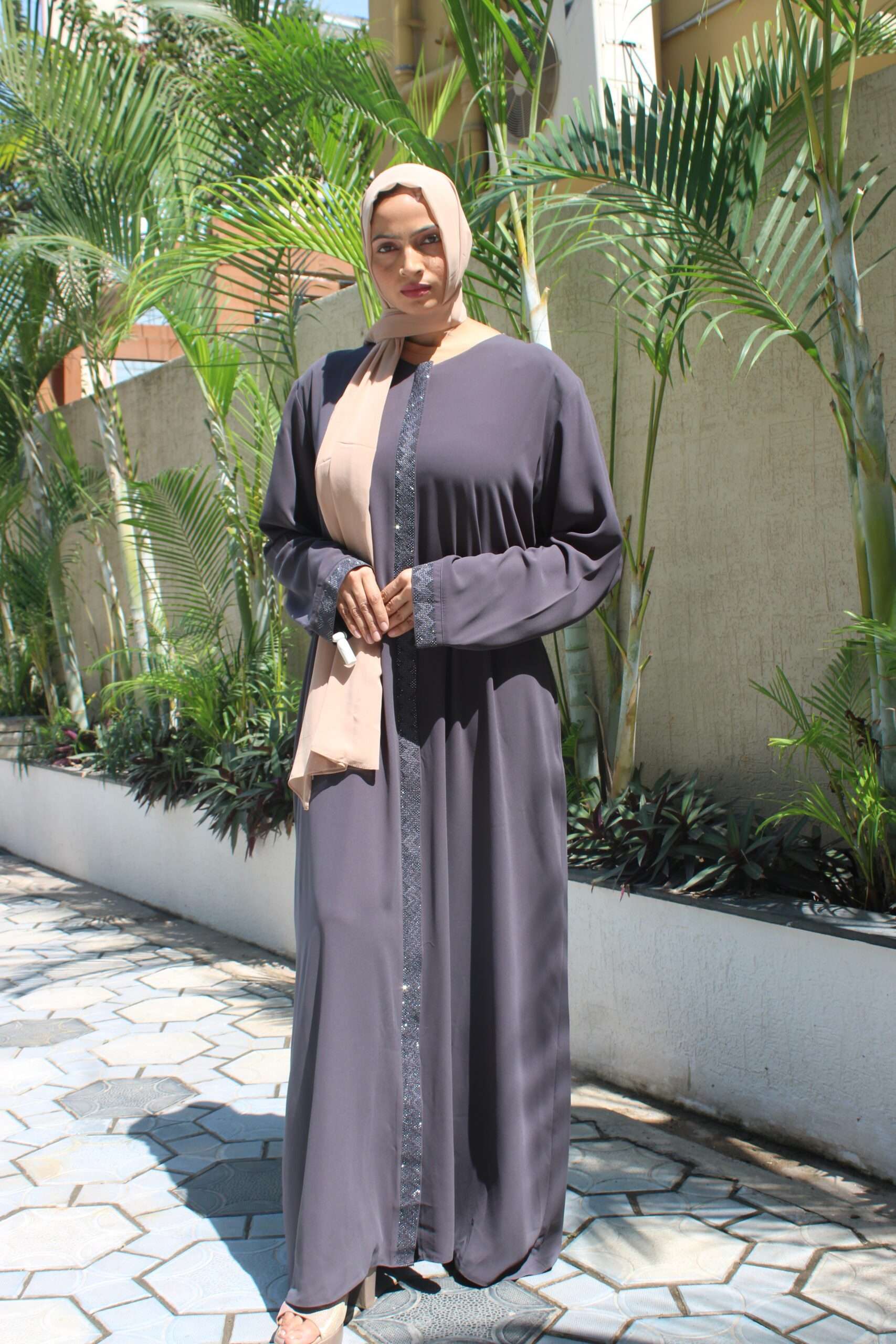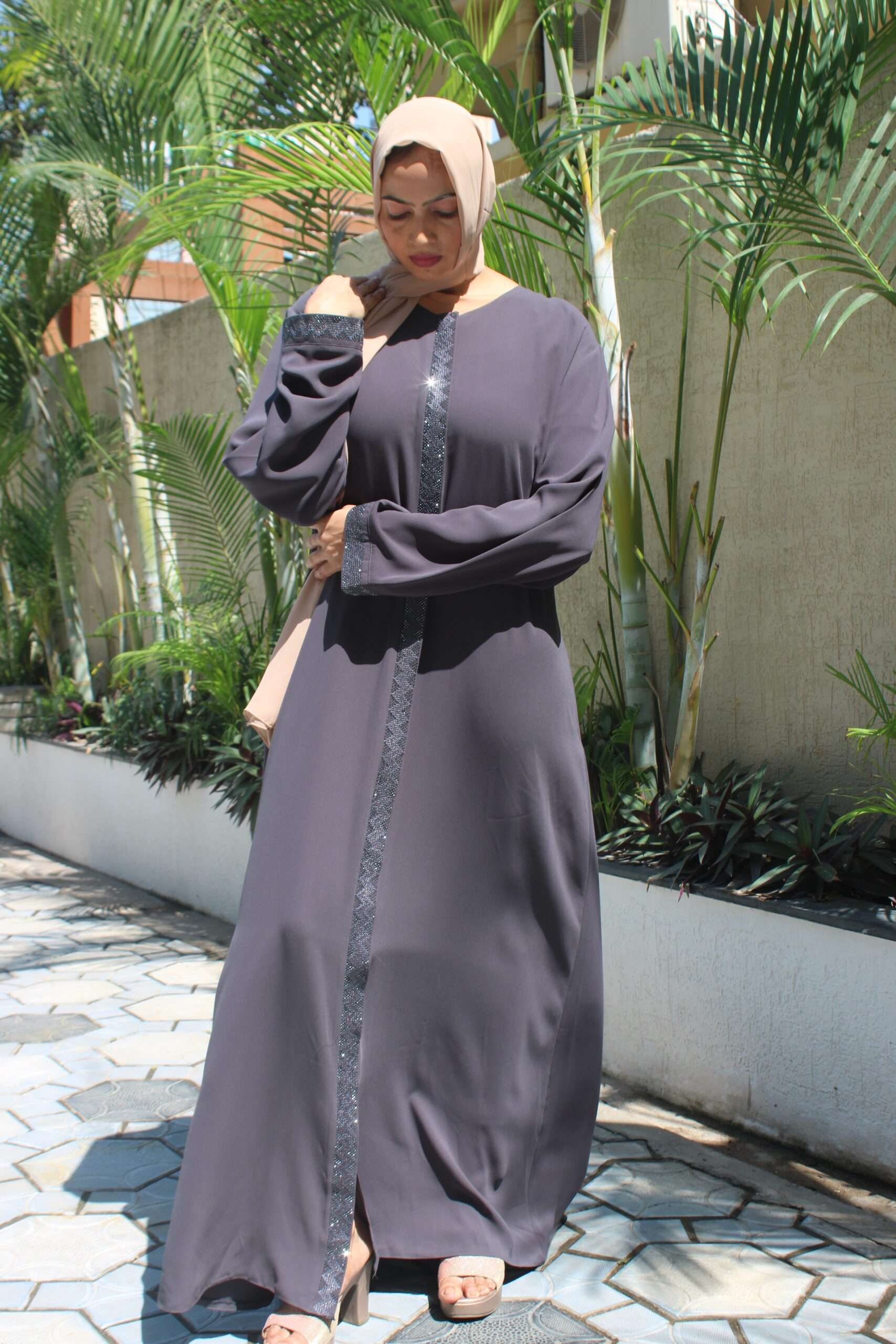 Exude sophistication with this elegant Grey Turkish Abaya, adorned with shimmering stone work for a refined touch. The soft grey hue adds a subtle charm, perfect for both casual and formal occasions. Sparkling stone embellishments highlight the neckline and sleeves, creating a graceful shimmer. Crafted from soft, flowing fabric, it ensures comfort and a flattering fit. A matching hijab with delicate stone accents completes the ensemble. Step out with confidence and timeless elegance!