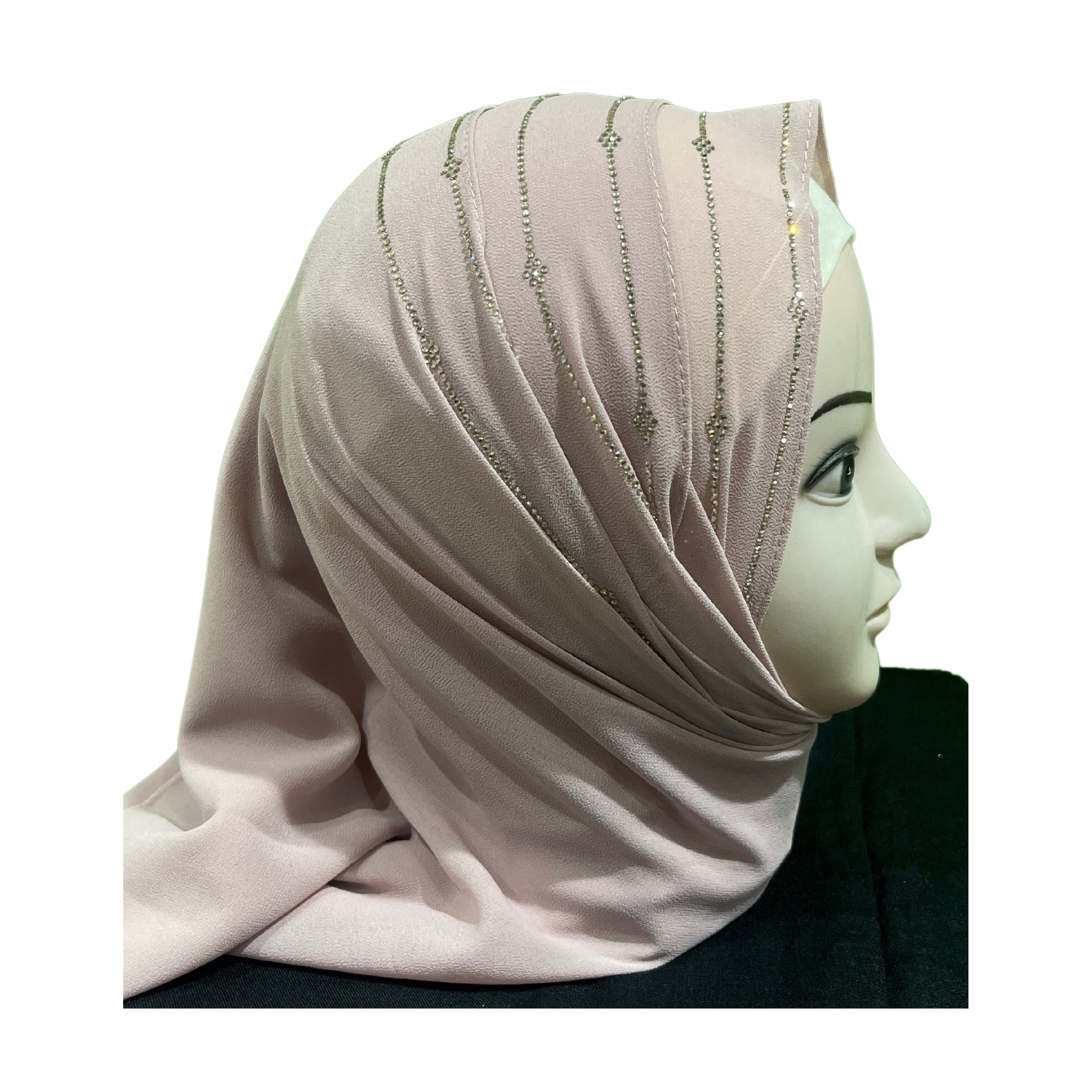 Light Cream Chiffon Party wear Scarf with Stone workLight Cream Chiffon Party wear Scarf with Stone work